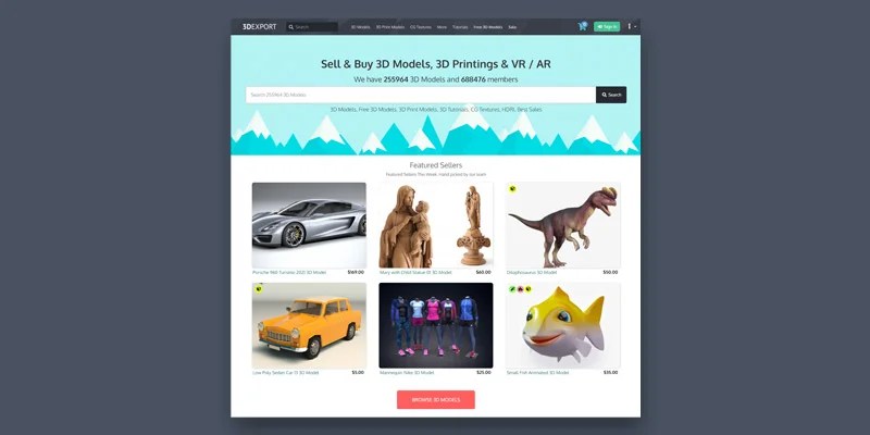 Our 3d models marketplace was launched in february 2004, and now we are one of the world's largest providers of high quality 3d content. 3dexport is a 3d model marketplace where you can buy and sell 3d models, cg textures and digital objects for 3d printing with royalty free.